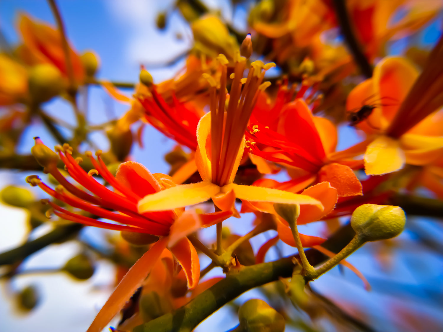 - Flowers: Bright red or pink, small, tubular flowers bloom during the hot season