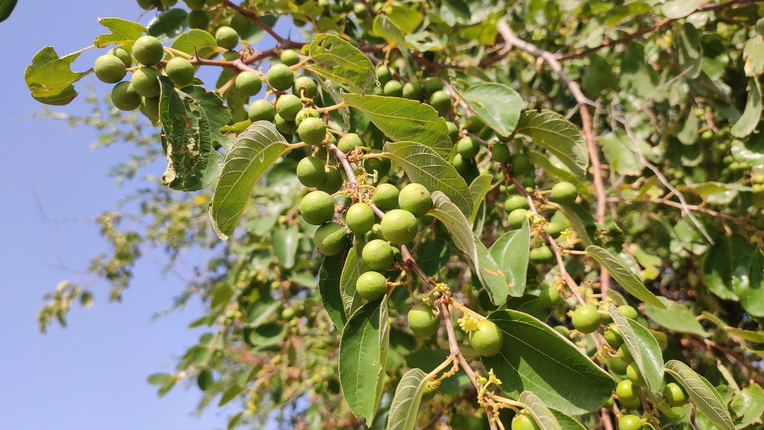 The Ziziphus nummularia, commonly known as Jharber or Wild Jujube, is a hardy, drought-resistant shrub or small tree native to arid and semi-arid regions. It features spiny branches and small, glossy green leaves that form a dense, rounded crown. The plant produces small, edible, round fruits that are highly nutritious and often used in traditional medicine and culinary applications.