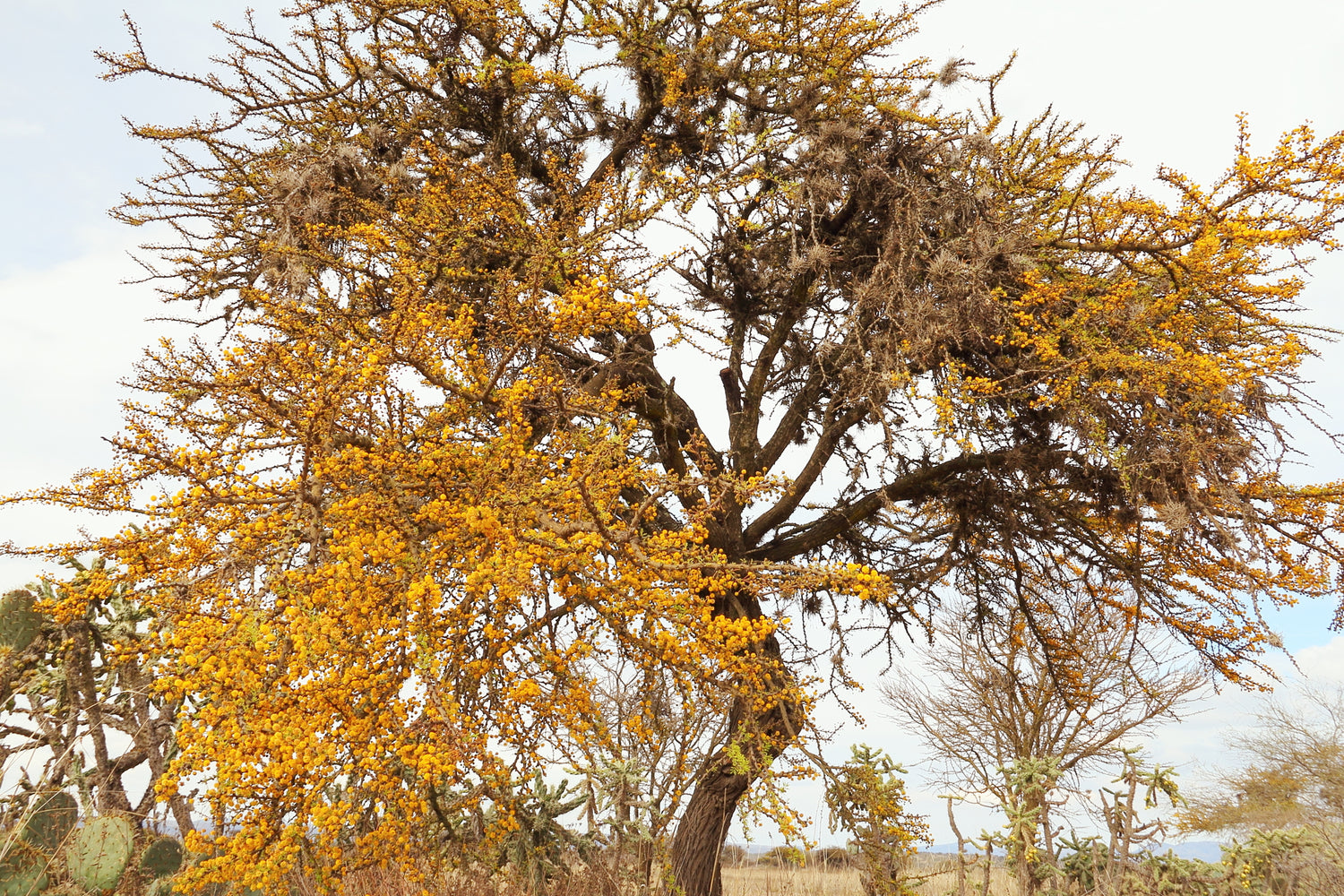- Flowers: Sweetly scented, golden-yellow puffball blooms year-round in warm climates
